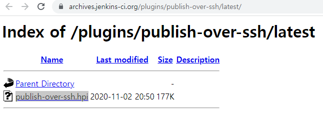 Publish Over SSH 플러그인을 기존에 사용 중이 었으면 이미 설치가 되어 있기 때문에 문제가 없지만 Jenkins를 새로 설치 한 후에 Publish Over SSH 플러그인을 설치하려면 Jenkins Plugin Manager에서 설치가 불가능 하다.